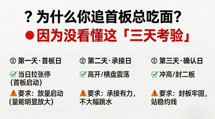 首板涨停是诱惑,三天企稳是考验;